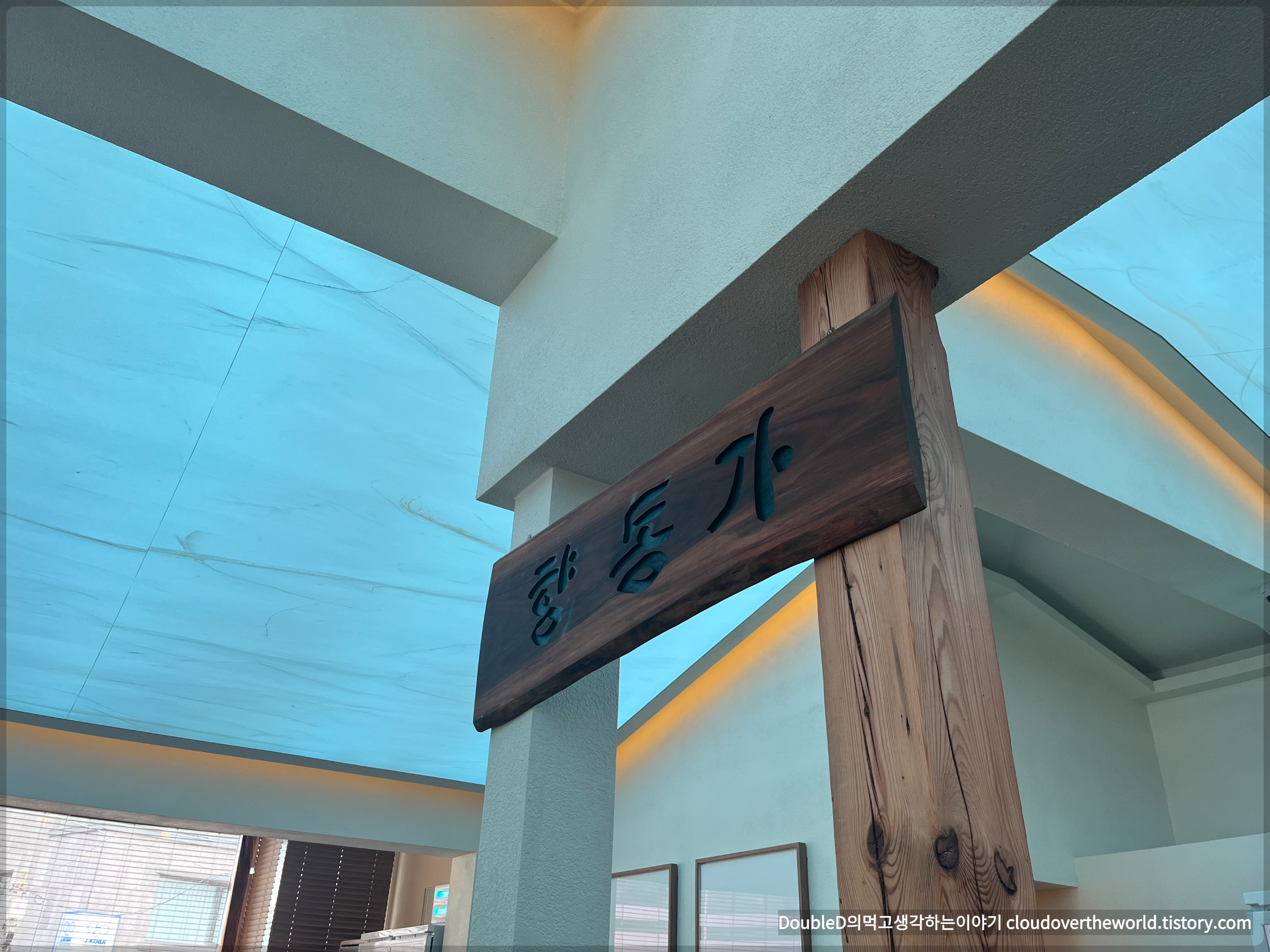 건물 외관은 모던하고 단정하며, 간판도 심플해서 잘 보면 ‘향동가’라는 글씨가 보입니다.
